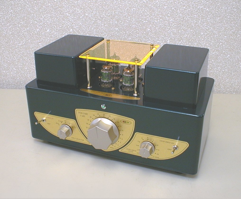 ・かわいらしいデザインのパワーアンプを造ってみました。 ・6V6と6L6どちらも無調整で使えるコンパーチブルパワーアンプです。 ・6V6、6L6はポピュラーな球で、国内外に多数の種類がありますので、とっかえひっかえ、音の差を楽しむことができます。 ・オールアルミダイキャストボディで、ライトグリーンメタリック塗装色です。 ・回路はオーソドックスな5極管接続です。 ・入出力端子に金メッキ部品を使用しました。 ・音は、定評ある6V6、6L6ですので、good!!です。 ・出力管はロシア製6V6が付きますが、他の種類をご希望の場合は、差額追加にて変更可能です。弊社真空管販売ページに各種ありますのでご覧ください。こちらです。 ・主な性能 使用可能真空管: 12AX7x1 6V6x2または6L6x2 最大出力:4W+4W 周波数特性:16Hz〜80KHz+0dB-3dB インピーダンス:6Ω〜8Ω ・大きさ: H160mmxW190mmxD220mm |